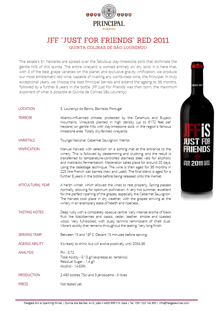 Castas: Touriga Nacional, Cabernet Sauvignon, Merlot